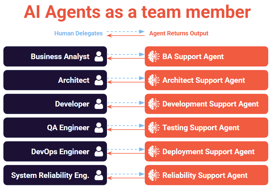 The next step is here, the technology already exists, the key is to harness it: Having specialized AI Agents as a helpful and valuable team member, an assistant for each tech role, to help in every project.
